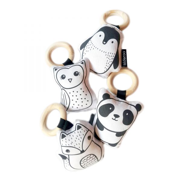 Looking for a great rattle set for your kids? How about these cute animal rattle sets for your baby by Kideroo? The whole set includes the cuddly fox plush rattle the lovable owl baby rattle the cuddly panda plush rattle for kids and the adorable penguin plush rattle for infants. A great toy for your newborn which provides years of entertainment. Handmade by Kideroo in South Africa these cute animal rattles for babies is the perfect gift for a friend or loved one. The monochrome colours on the soft and plush covers provide your baby room with an elegant and stylish theme. The smooth cotton twill and the eco-friendly toy fill provide your child with all the soft comfort they will need. The cuddle friendly and cute animal rattle set for babies is the perfect companion for your child growing up. Suitable for all children between the ages of 0 to 8 buy your child the best gift they can get.